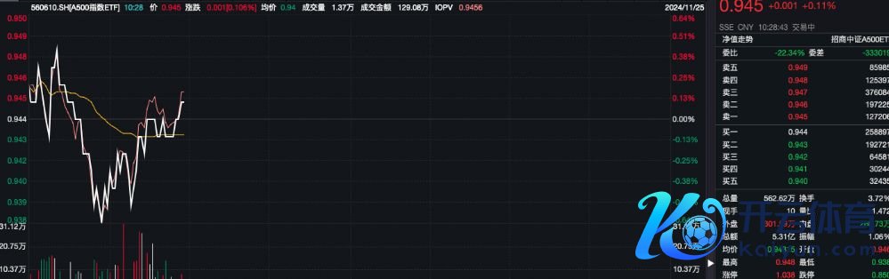 11月25日,A股早盘探底回升,上证指数、深证成指现已翻红,中证A500指数适度发稿涨0.25%。
