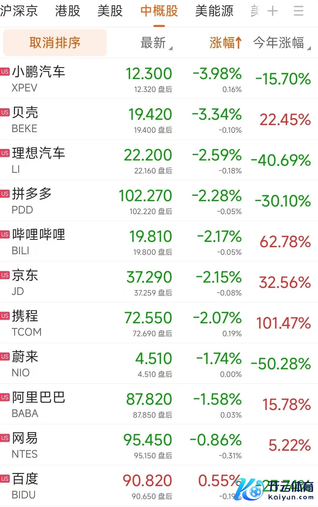 中概股而言,周五则多半下落,纳斯达克中国金龙指数下落1.13%。小鹏汽车、贝壳跌超3%;拼多多、京东、携程、理念念汽车跌超2%;阿里巴巴、华住跌超1%。百度、中通快递、富途控股收盘上升。